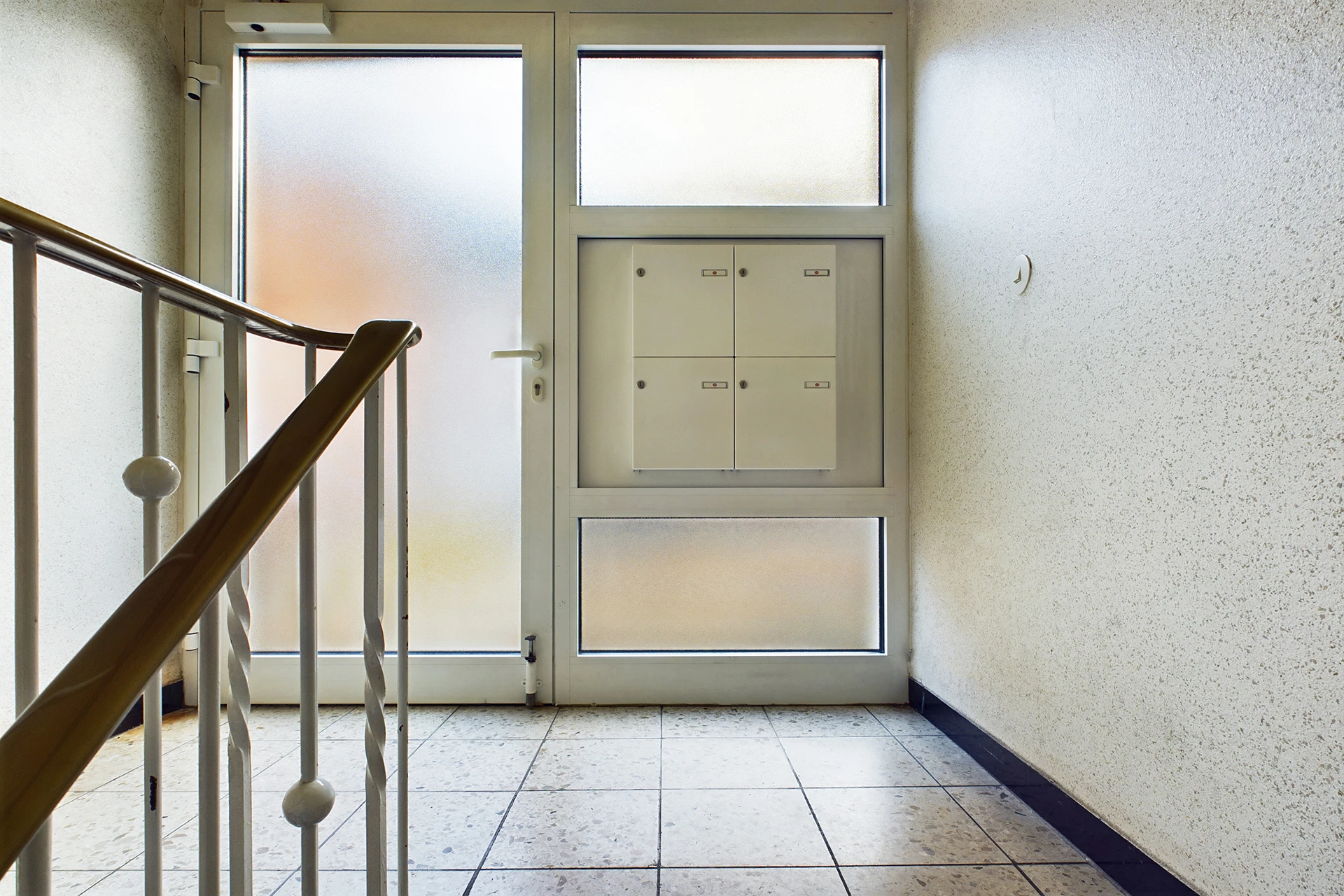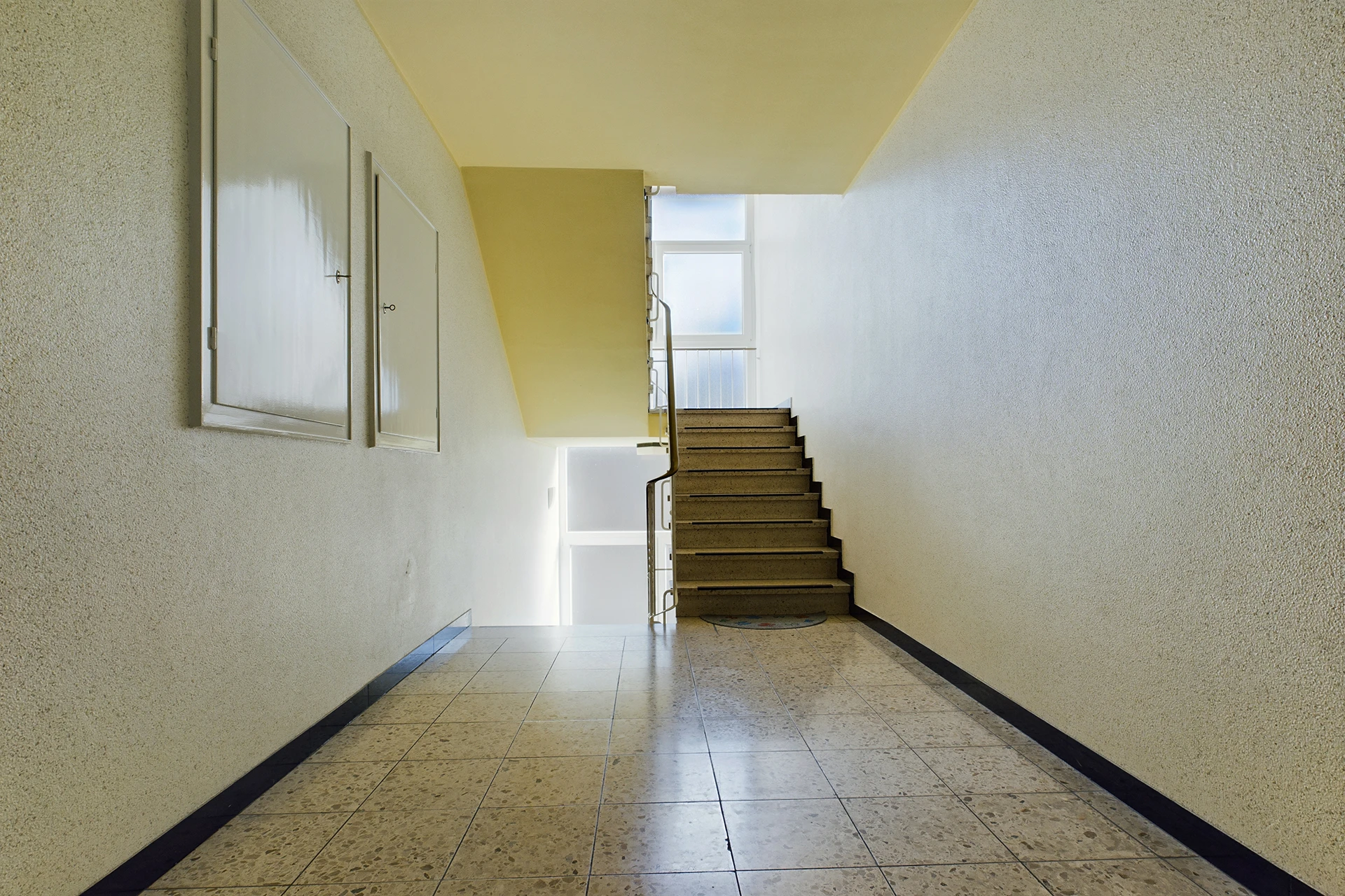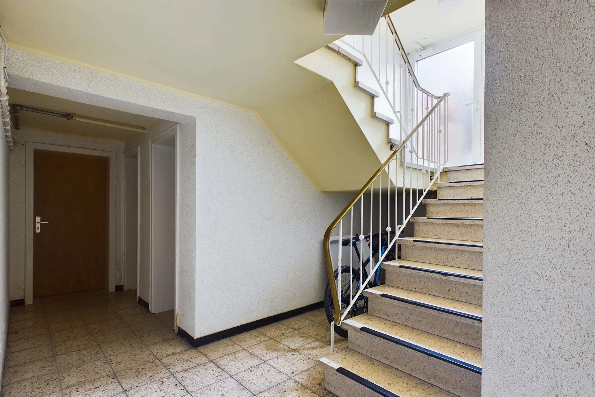 - massive Treppen mit Metallgeländer