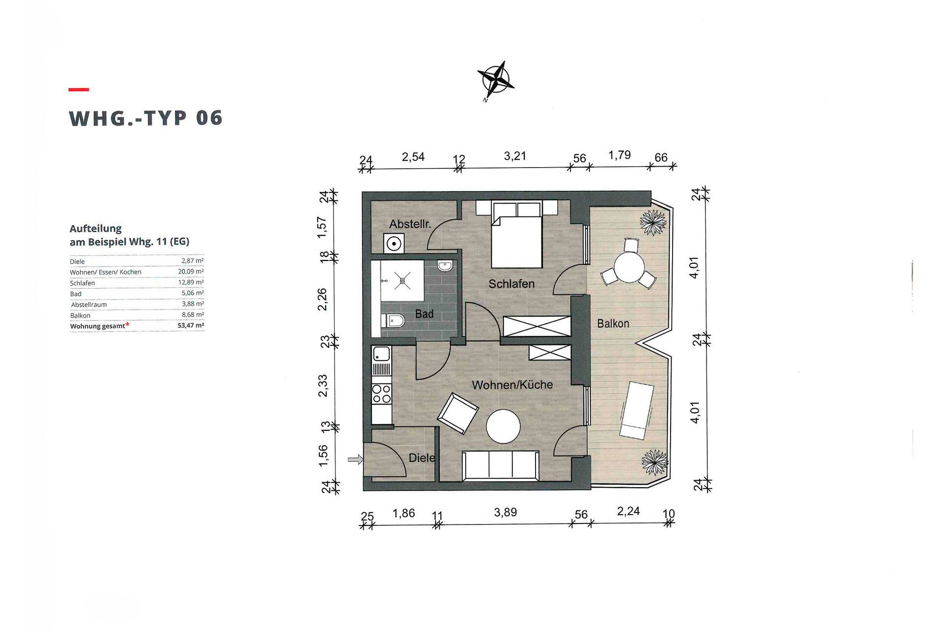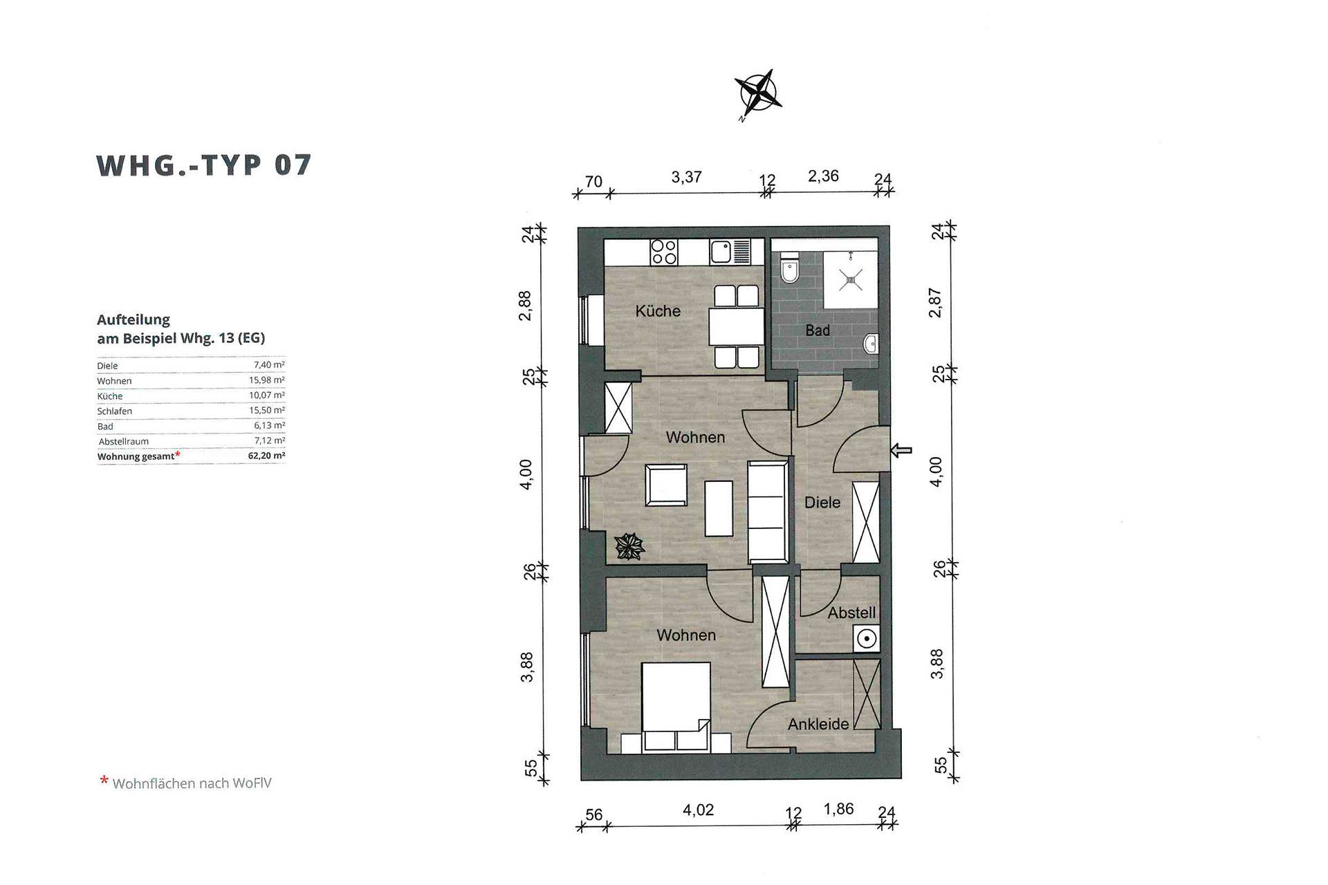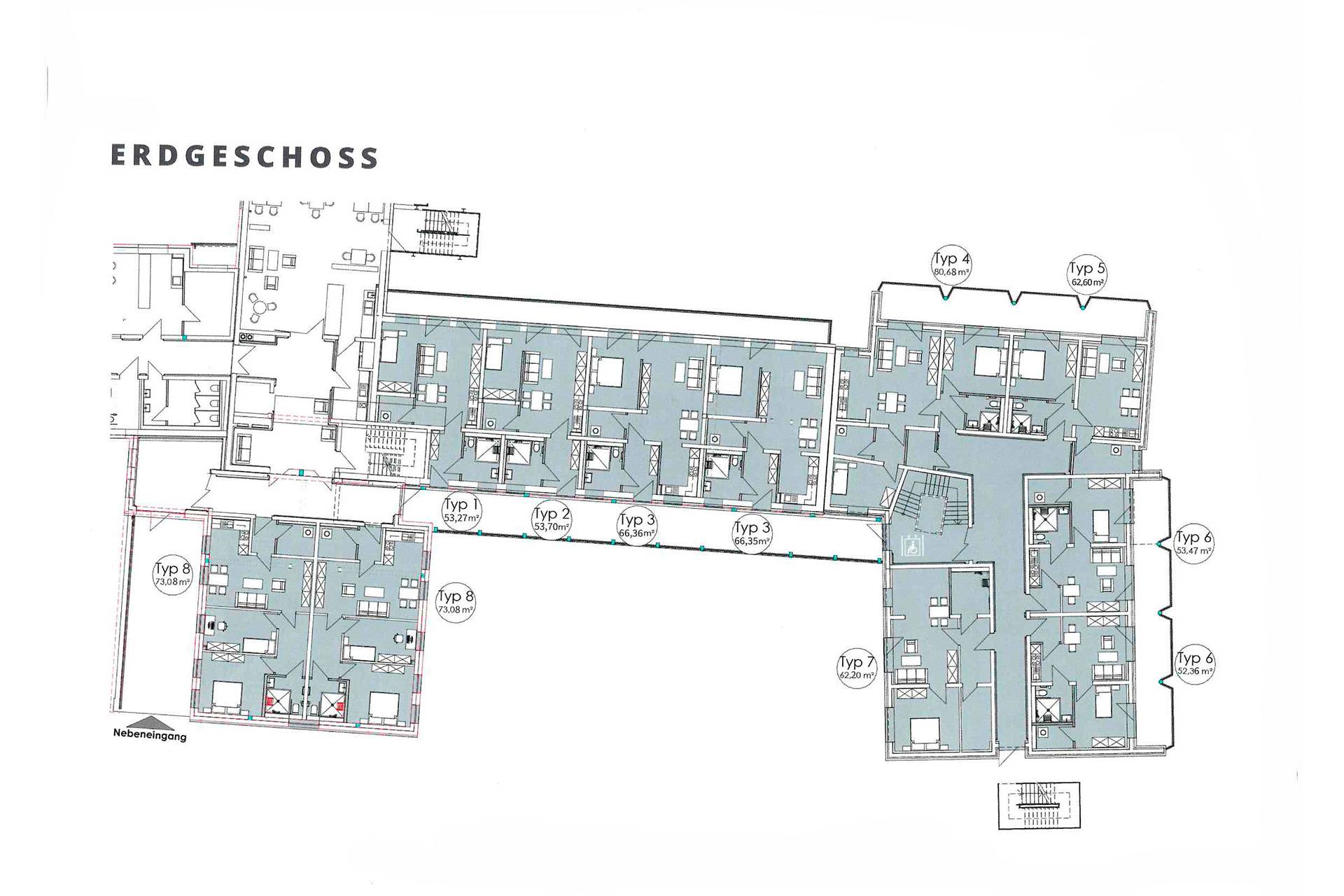 Wählen Sie zwischen den Wohnungstypen 2, 3, 5, 6a, 6b, und 7 (siehe Anlage)