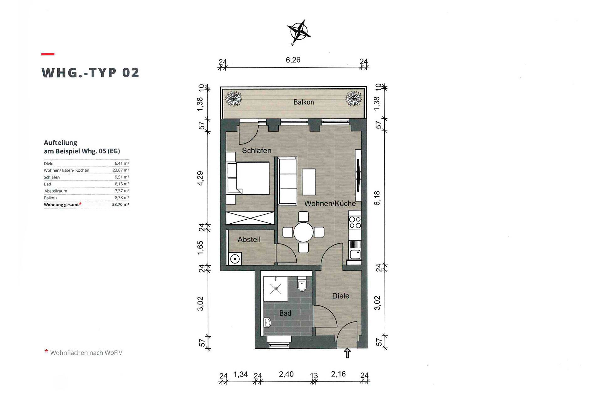 Die genauen Grundrisse und Größen finden Sie in der Anlage anhand der Wohnungsnummer / Typ Größe.