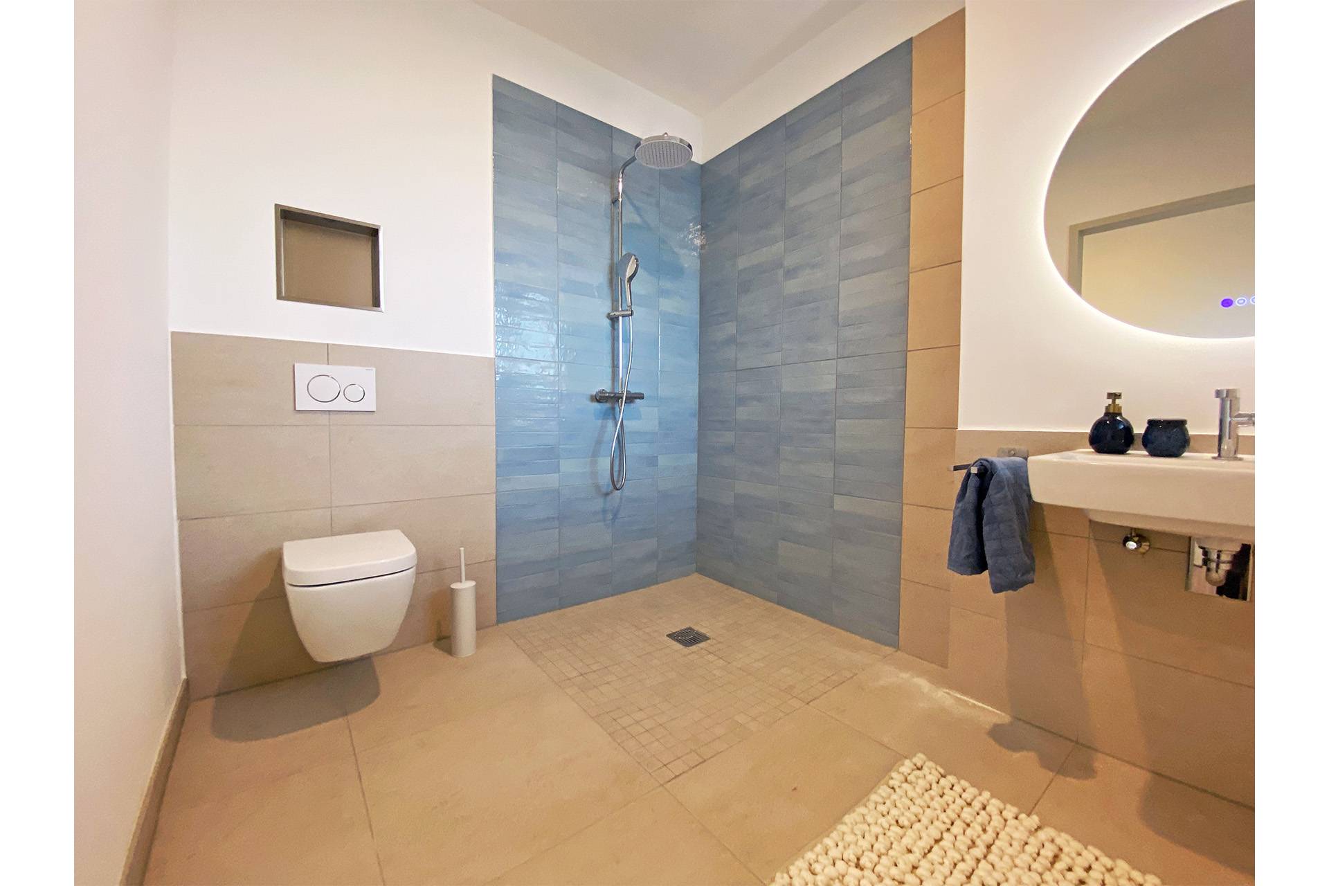 Moderne, barrierefreie Badausstattung mit leicht zugänglichen Duschen/Badbereichen
